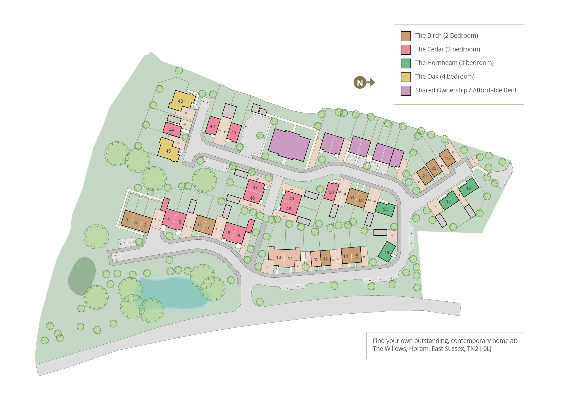 | 53 | The Hornbeam | Detached | 3 | Garage + 2 x spaces |